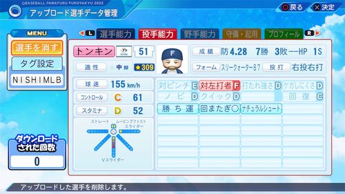 マイケル・トンキン MIN(2013-2017)-日本ハム(2018)-米独立リーグ(2019,2021)-メキシカンリーグ(2021)-ATL(2023)-NYM(2024-) 通算成績 186試合 10勝6敗 防御率4.37 224奪三振 1セーブ 13ホールド fWAR0.1 獲得タイトル:特になし 2023年 45試合 7勝3敗 …